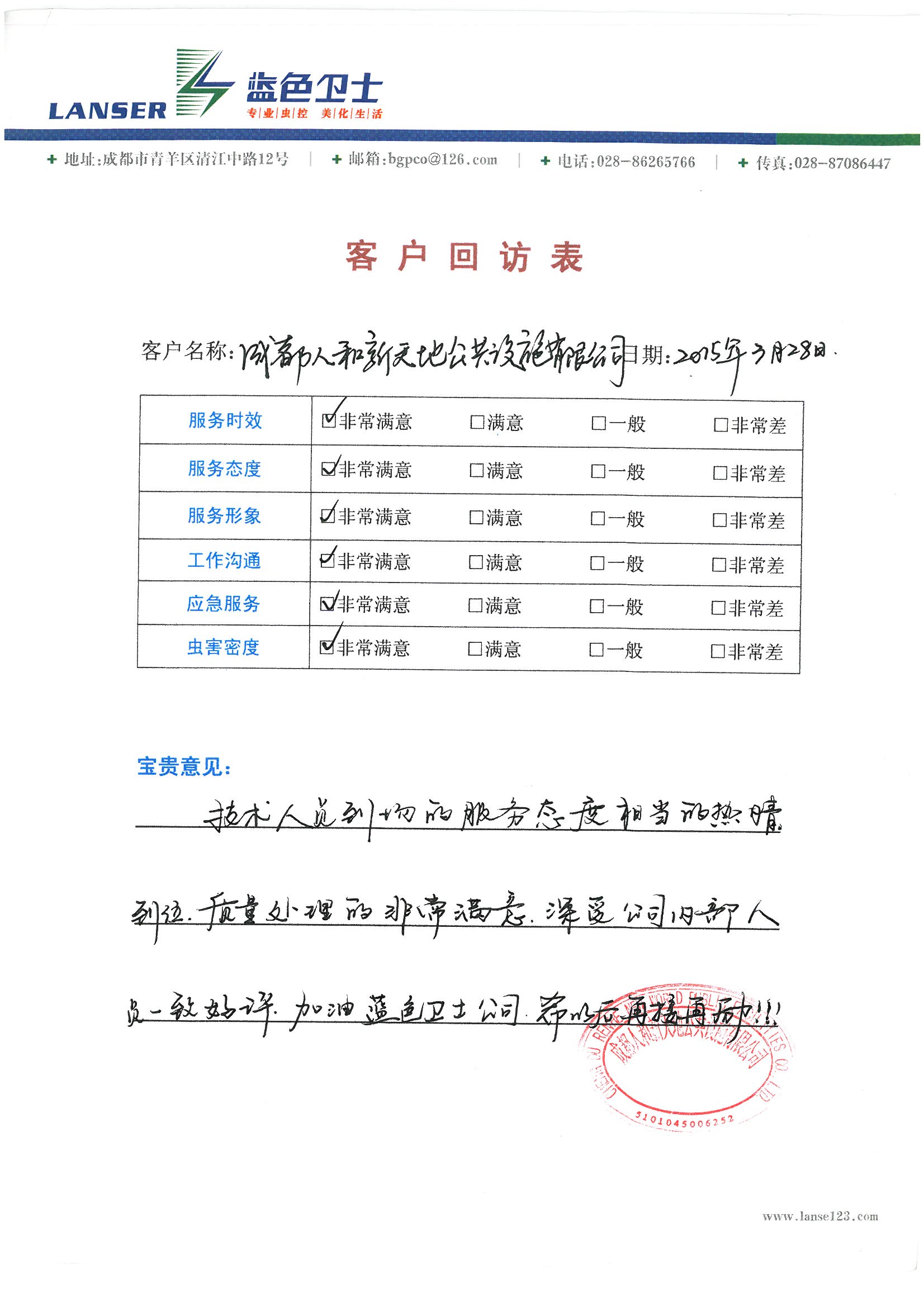 成都地一大道對我公司技術(shù)人員和質(zhì)量的評價(jià):