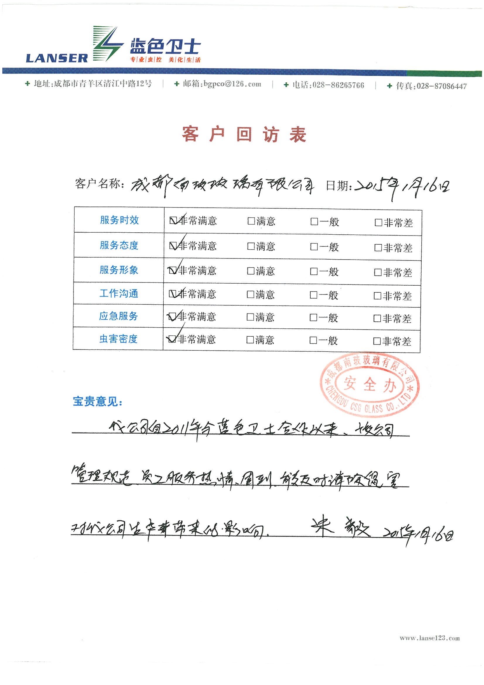 南玻玻璃對我公司服務(wù)質(zhì)量的評價(jià):